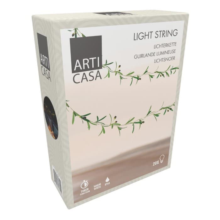 Decorative leaf string light with timer, 200cm long. Creates a cozy atmosphere. Battery operated, easy to use anywhere.