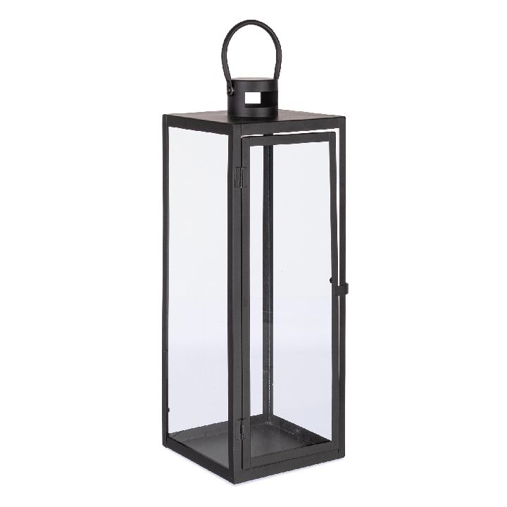 Measures: 18 x 18 x H50.5cm. Made of powder coated metal and glass.