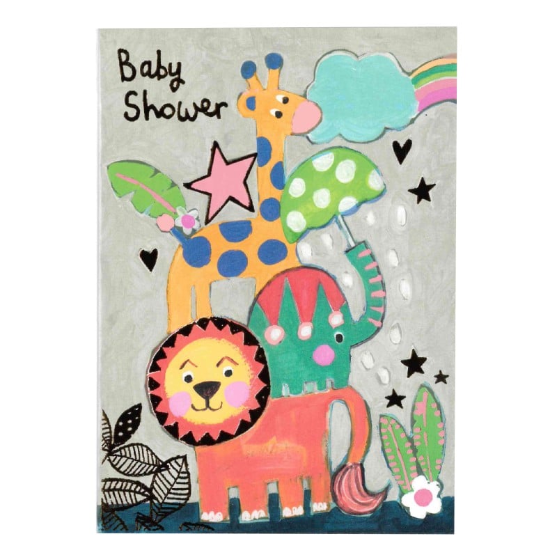 Printed with Bright Neon inks on board finished with raised gold foil. Paired with a gorgeous floral envelope.
