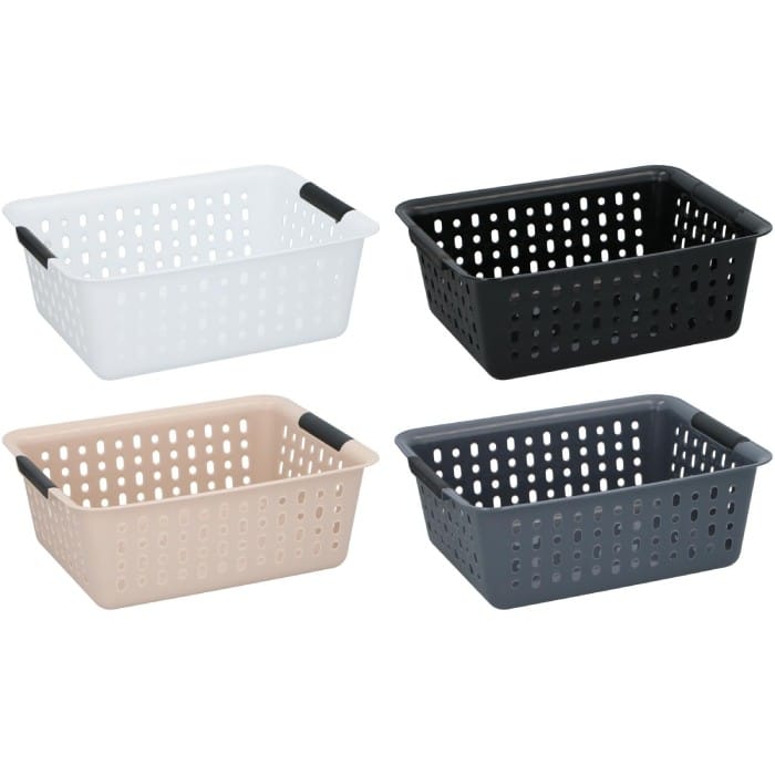 Spacious storage basket for organizing various items. Lightweight, durable, and ideal for home use. Available in multiple colors, price is for one basket only.