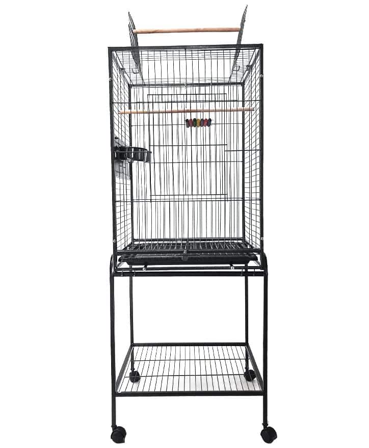 Open Top Metal Bird Cage with Stand on Wheels. Drawer tray for easy cleaning.