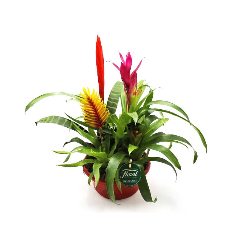 Bromeliads (Bromeliaceae family) are colorful, tropical plants known for their striking rosettes and long-lasting blooms. They thrive indoors in Malta’s bright, warm environment and bring a vivid tropical touch to any space.