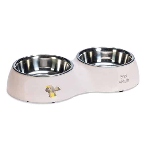 With the Beeztees Binky Dinner Set, you can provide your pup with delicious food and water in style. This dog food and water bowl for your pup is made of plastic and includes two removable stainless steel bowls. So you only need to grab the stainless steel bowls to provide your pup with food or water. The stainless steel prevents food odors from being absorbed, and they are also dishwasher safe. To prevent slipping and scratching your floor, the plastic bowl has anti-slip caps on the bottom. As the image on the bowl says: Bon Appetit!
