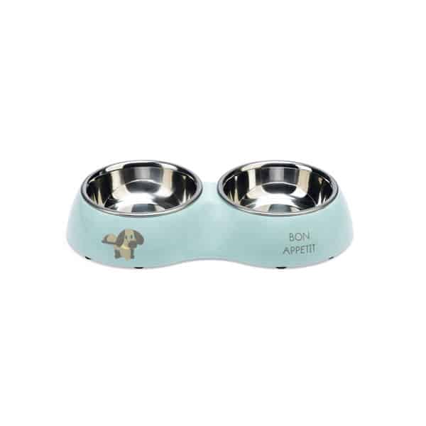With the Beeztees Droppy Dinner Set, you can provide your pup with delicious food and water in style. This dog food and water bowl for your pup is made of plastic and includes two removable stainless steel bowls. So all you have to do is grab the stainless steel bowls to provide your pup with food or water. The stainless steel prevents food odors from being absorbed. Moreover, the stainless steel bowls are dishwasher safe. To prevent slipping and scratching your floor, the plastic bowl has anti-slip caps on the bottom. As the image on the bowl says: Bon Appetit!