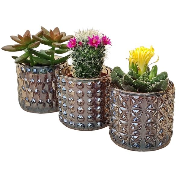 Cactus and Succulent Mix in Frosted Glass Pot 6cm