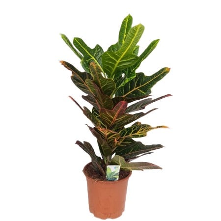 A bold, colourful houseplant with striking multi-toned leaves, perfect for adding vibrant tropical colour indoors.