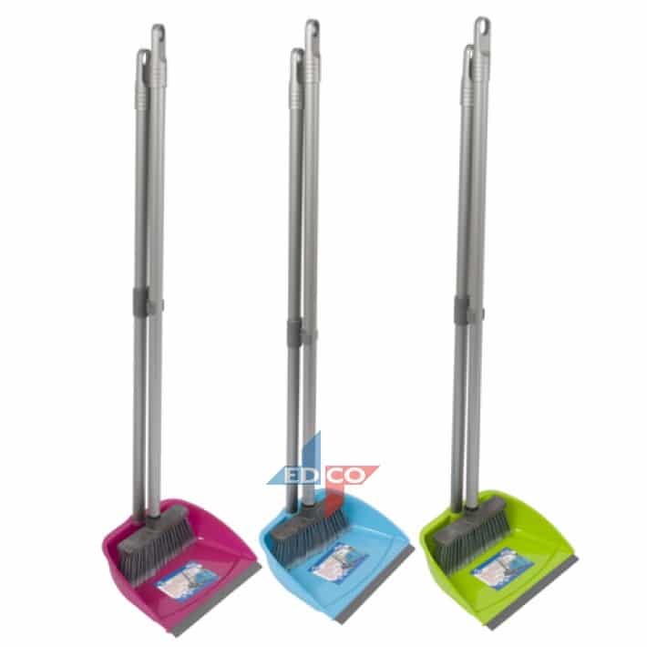 Convenient dustpan and broom with handle for quick and easy floor cleaning. Perfect for everyday household use. Price for 1 item only at assorted colour.