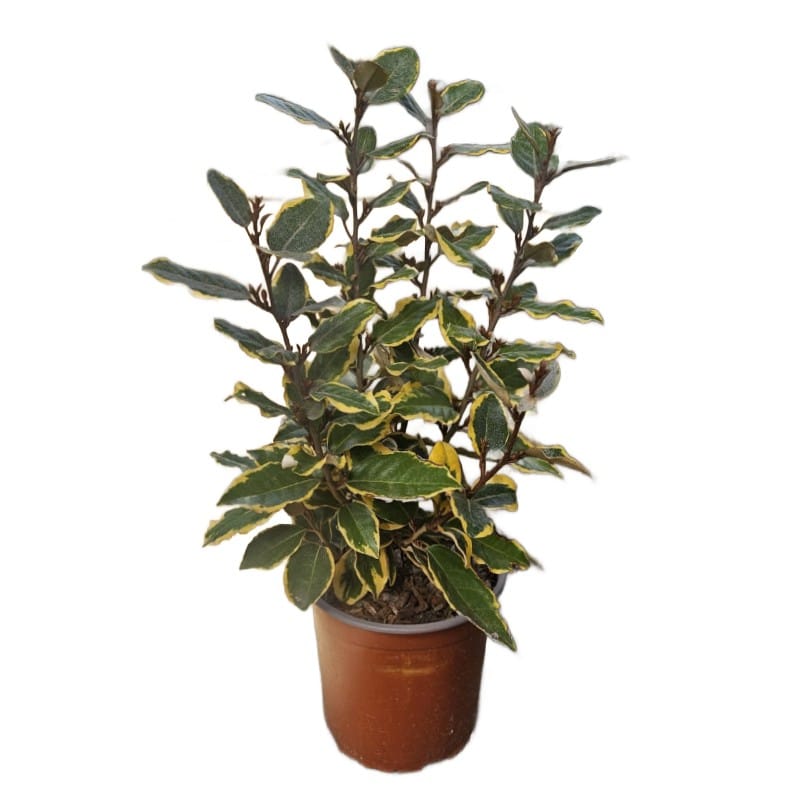 Features dense, leathery variegated foliage with a naturally bushy habit. Produces small, fragrant autumn flowers followed by decorative berries.