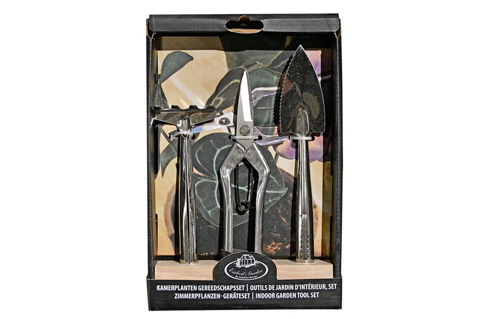 This set contains everything needed to take good care of houseplants. The set consists of a rake, shovel, pruner and holder.