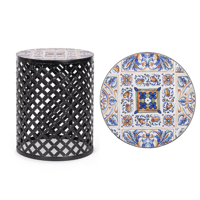 Steel frame for outdoor use (e-coating) and epoxy powder coated. Ceramic top.