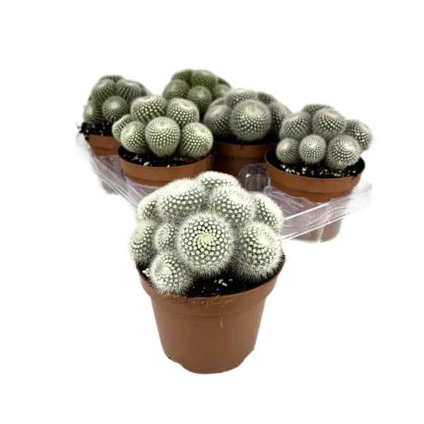 Small globular cactus with dense, fine white spines.