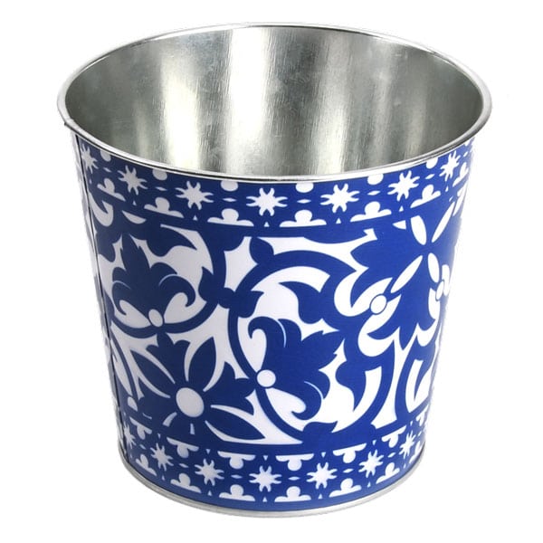 This flower pot is provided with a blue and white design that recreates the Portuguese tiles decoration.