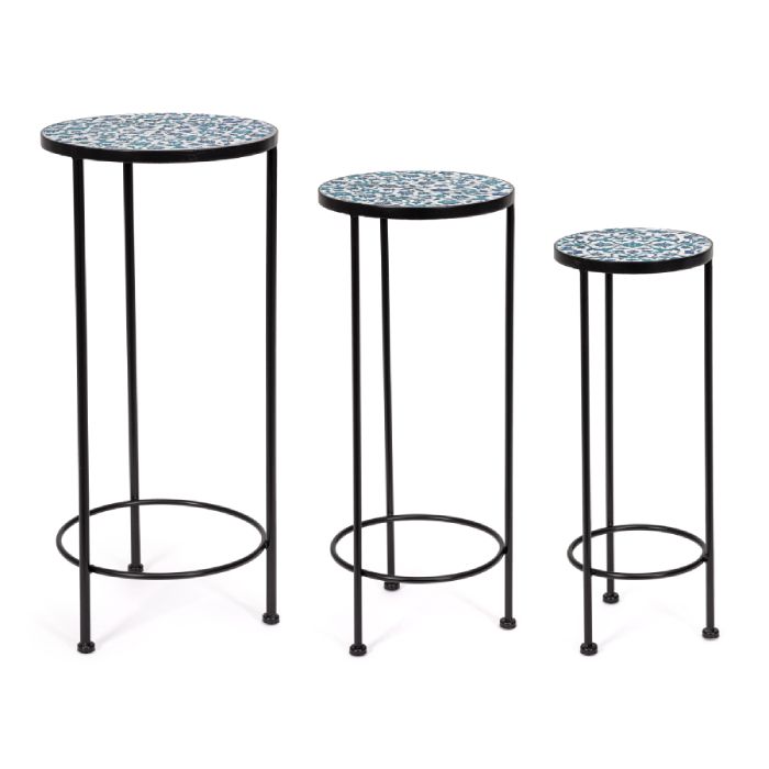 Steel frame for outdoor use (e-coating) and epoxy powder coated. Ceramic top.