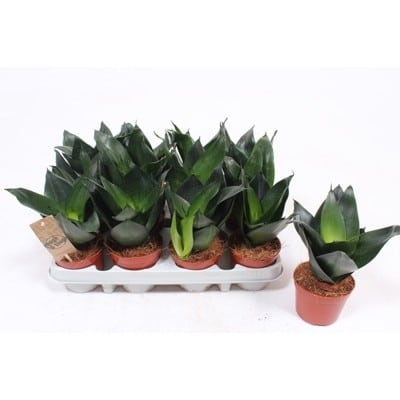Sansevieria Hahnii is a popular, compact Bird’s Nest Snake Plant. The dark, glossy leaves are funnel shaped and form an elegant rosette of lush succulent foliage.