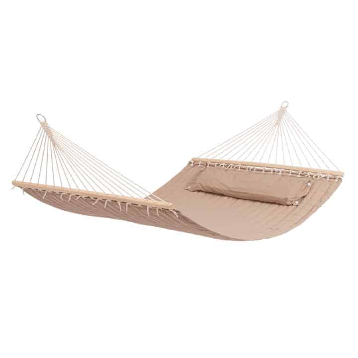Padded seat in poly-cotton fabric (cotton, polyester) with cushion. Poplar Wood bars