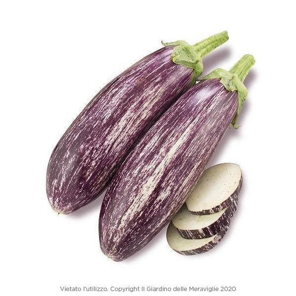 Medium cycle violet eggplant hybrid suitable for greenhouses and open fields. Zebrina eggplant is an elongated oval cream color with light purple streaks with an average weight of 150-250 gr.