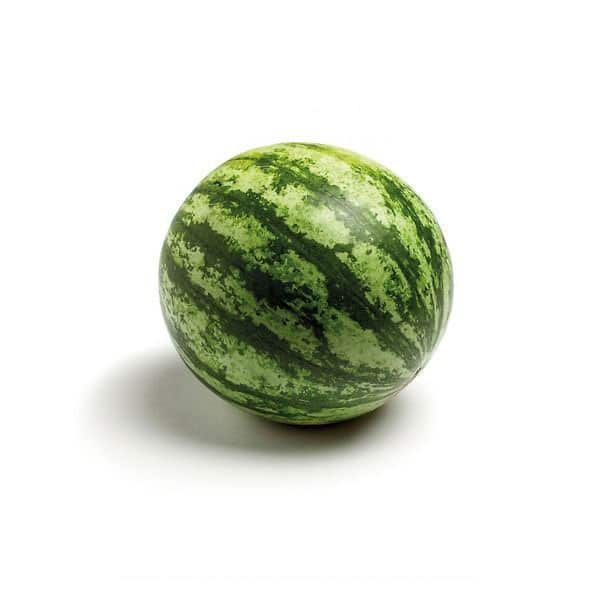 Mini watermelon that produces fruits with an average weight of 2 kg. They have a slightly oval rounded shape, they have the characteristic light green-dark green streaks. The pulp is very sweet, crunchy, deep red in color, with very few seeds and much smaller than similar varieties. Medium thickness peel. Vigorous and covering plant with medium-early cycle. Having very few seeds, it is suitable for the preparation of sorbets, fruit salads or simply to eat fresh. It provides readily assimilable sugars and has a good content of potassium and Vitamin C.