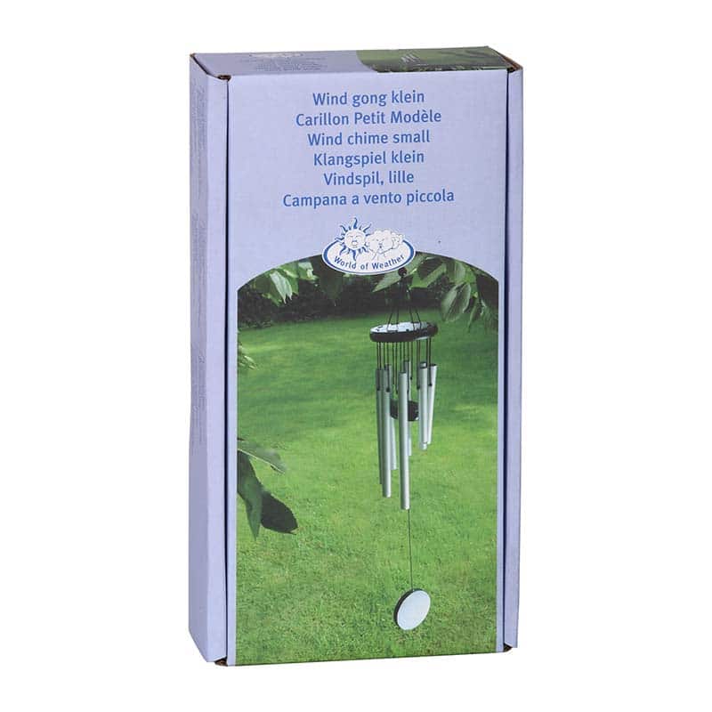 Small round wind chime with 8 aluminum tubes. Packed in a gift box.